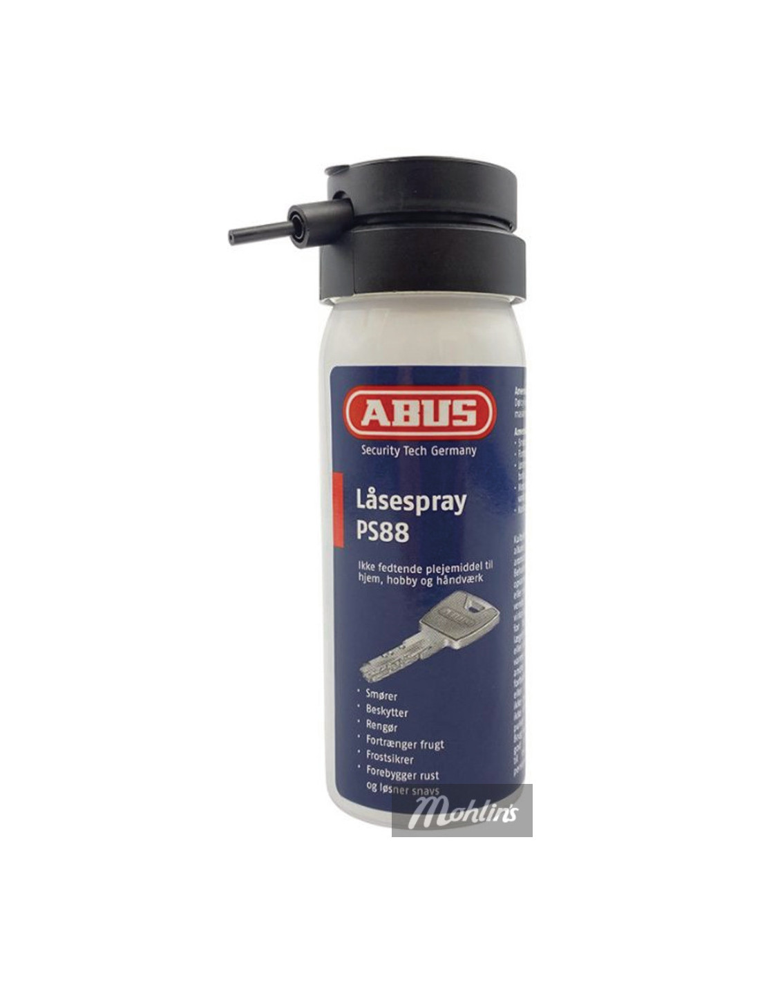 Icke-smörjande specialskötselsprayen PS88 passar alla låscylindrar som t.ex. dörrcylindrar, cykellåscylindrar eller hänglåscylindrar och ser till så att låscylindrarnas inre hålls välskötta och att nyckeln går att vrida om smidigt. PS88 skyddar låscylindern mot damm, smuts med mera så att den blir tåligare och får längre livslängd. Spraya bara i låscylindern så är det klart. Obs! Är låscylindern jättesmutsig, så rinner smutsen ur efteråt. Så det kan vara bra att ha en trasa tillhands för att fånga upp smutsen.