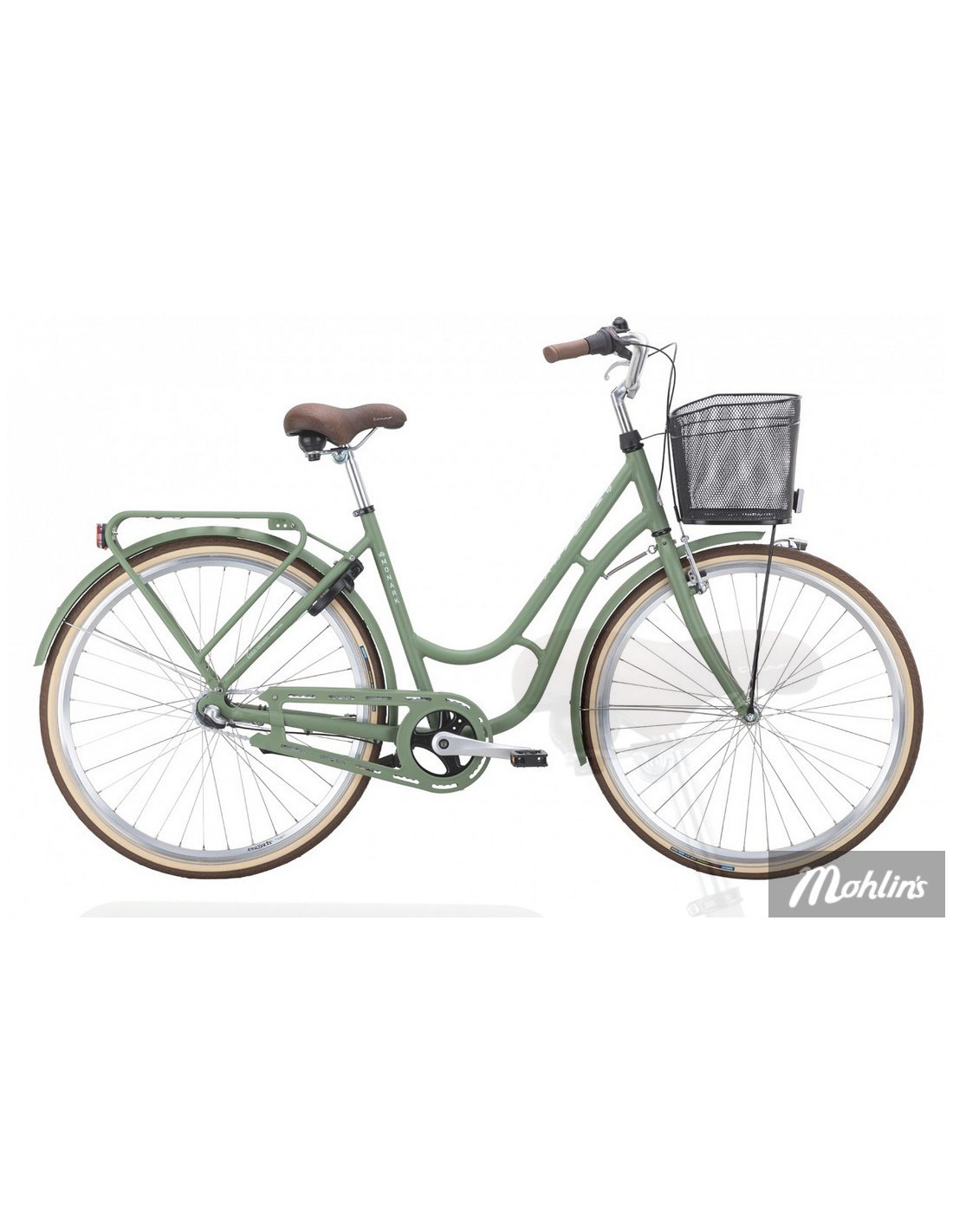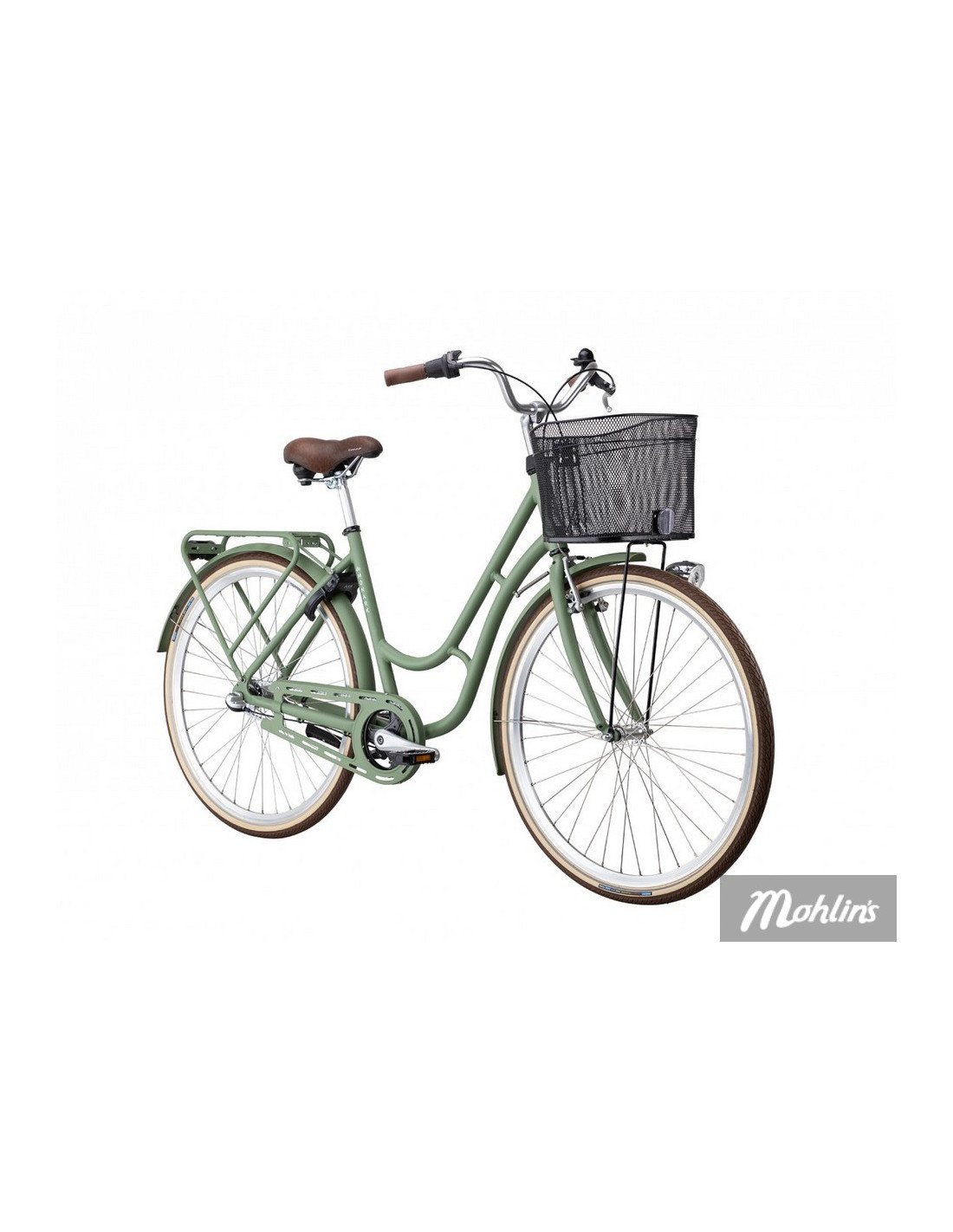 Karin är fullt utrustad för alla väder och tillfällen med rejäla skärmar i plåt, pakethållare, lås, stöd, ringklocka, reflexer och belysning. Med korg framtill och praktiska AVS-klickfästen på pakethållaren kan du enkelt montera korg, låda eller väska och få med dig allt du behöver.