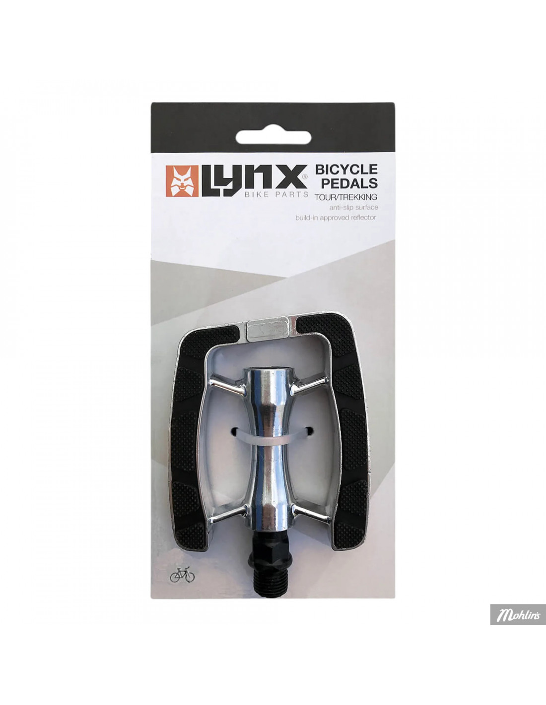 Dessa Lynx-pedaler har en halkfri yta för optimalt grepp och godkända inbyggda reflexer. Pedalerna är tillverkade av stark aluminium. Lämpliga för nästan alla cyklar, särskilt populära för den sportiga touring-/trekkingcykeln.
