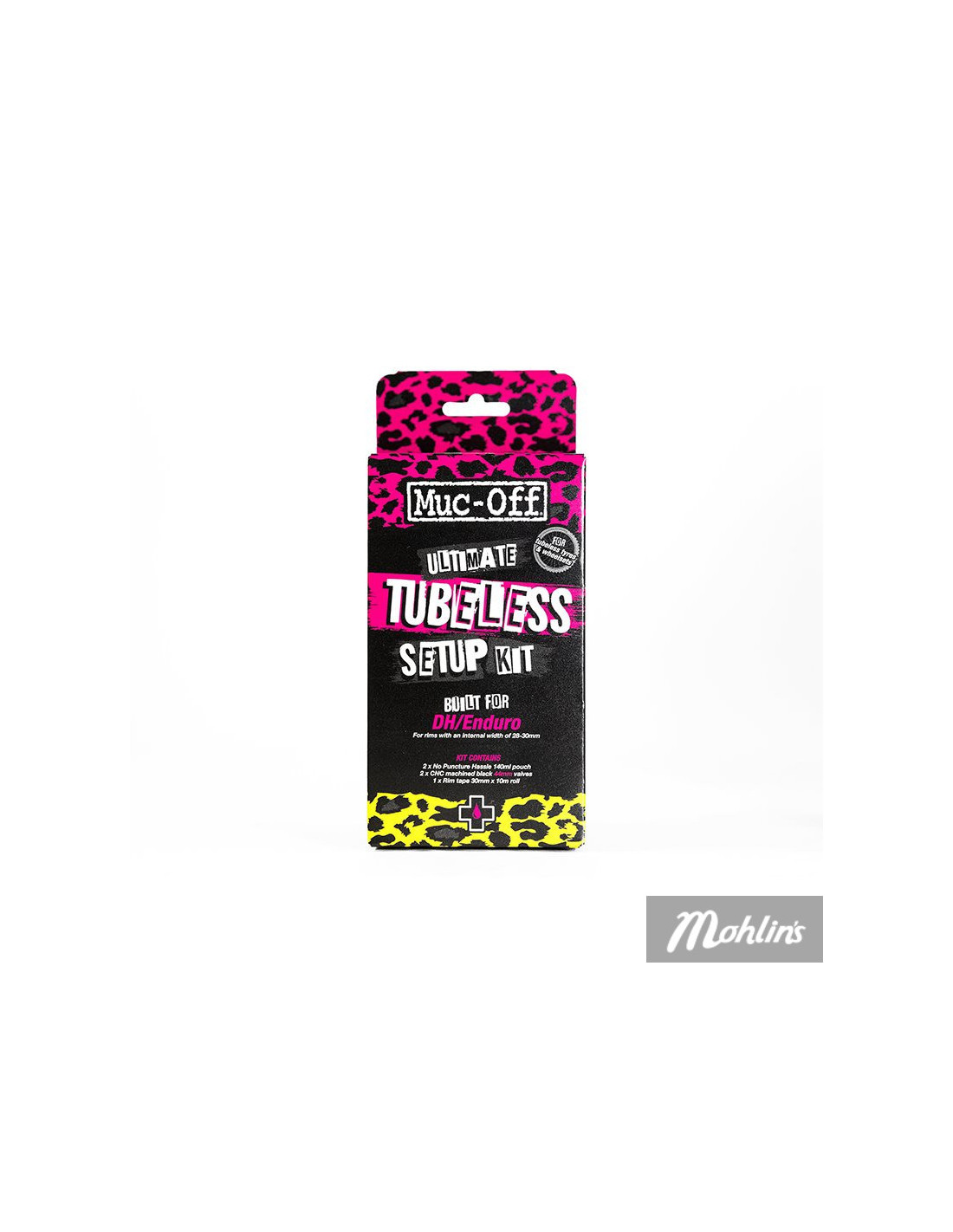 Kitet innehåller allt du behöver för att konvertera dina däck till tubeless. Det inkluderar en tub med Muc-Off No Puncture Hassle Sealant, som förhindrar punkteringar och håller dina däck i toppskick. Dessutom ingår en Muc-Off Tubeless Rim Tape, som ger en tät och säker tätning mellan fälgen och däcket.