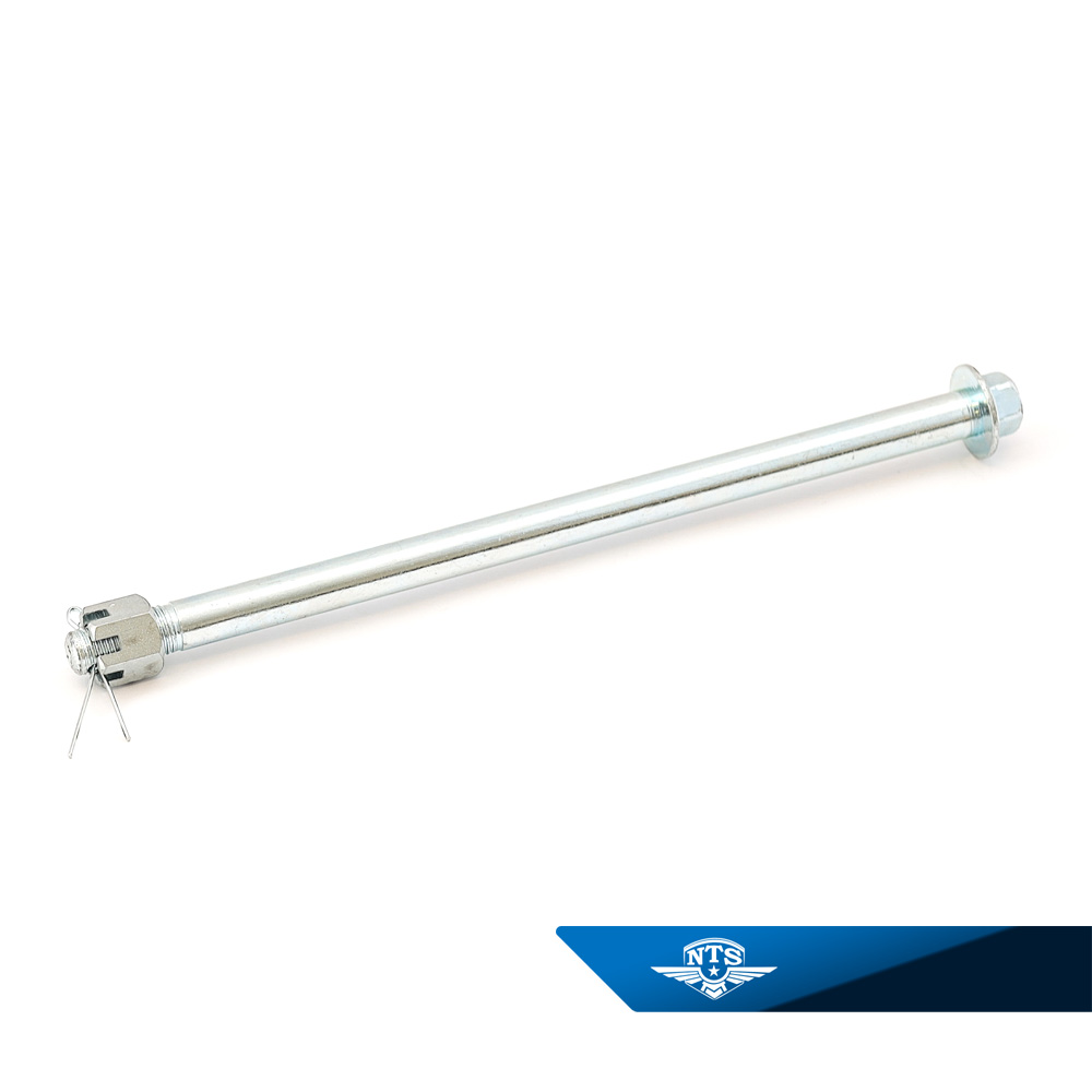 Axeln har en effektiv längd på 225 mm och är försedd med M12x1,25-gänga, vilket säkerställer korrekt montering och stabil funktion. Den blankförzinkade ytan ger inte bara ett snyggt utseende utan skyddar även effektivt mot korrosion.