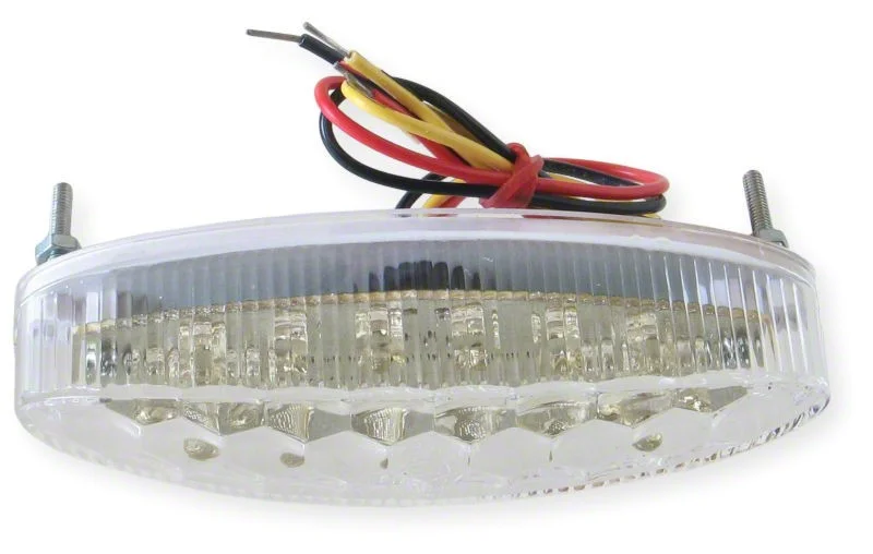 Baklampa med klart glas. Med bromsljus. E-märkt vilket gör den laglig för allmän väg.