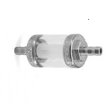Bränslefilter i kromat och transparent utförande för 6 mm bränsleslang. Gör det enkelt att se bränsleflöde och smuts i filtret och används vid service eller byte av befintligt filter.