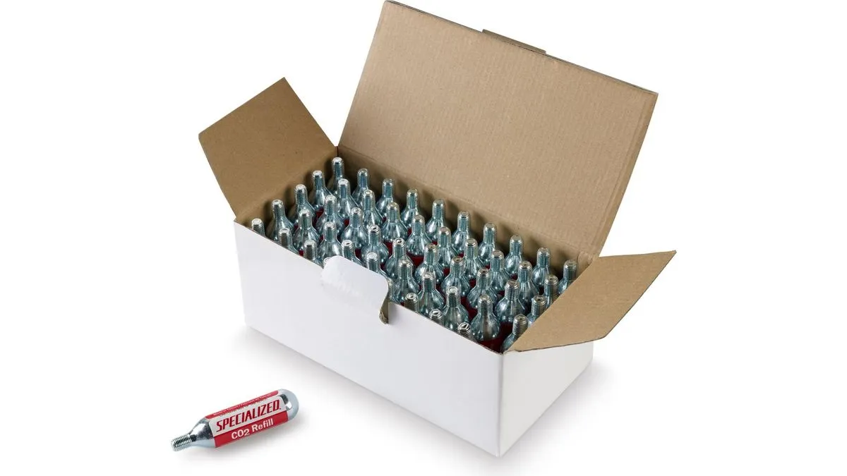 Specialized CO2 Canister 16g Bulk är ett praktiskt storpack med kolsyrepatroner som gör det enkelt att snabbt pumpa upp dina cykeldäck när du är ute på vägarna eller stigarna.