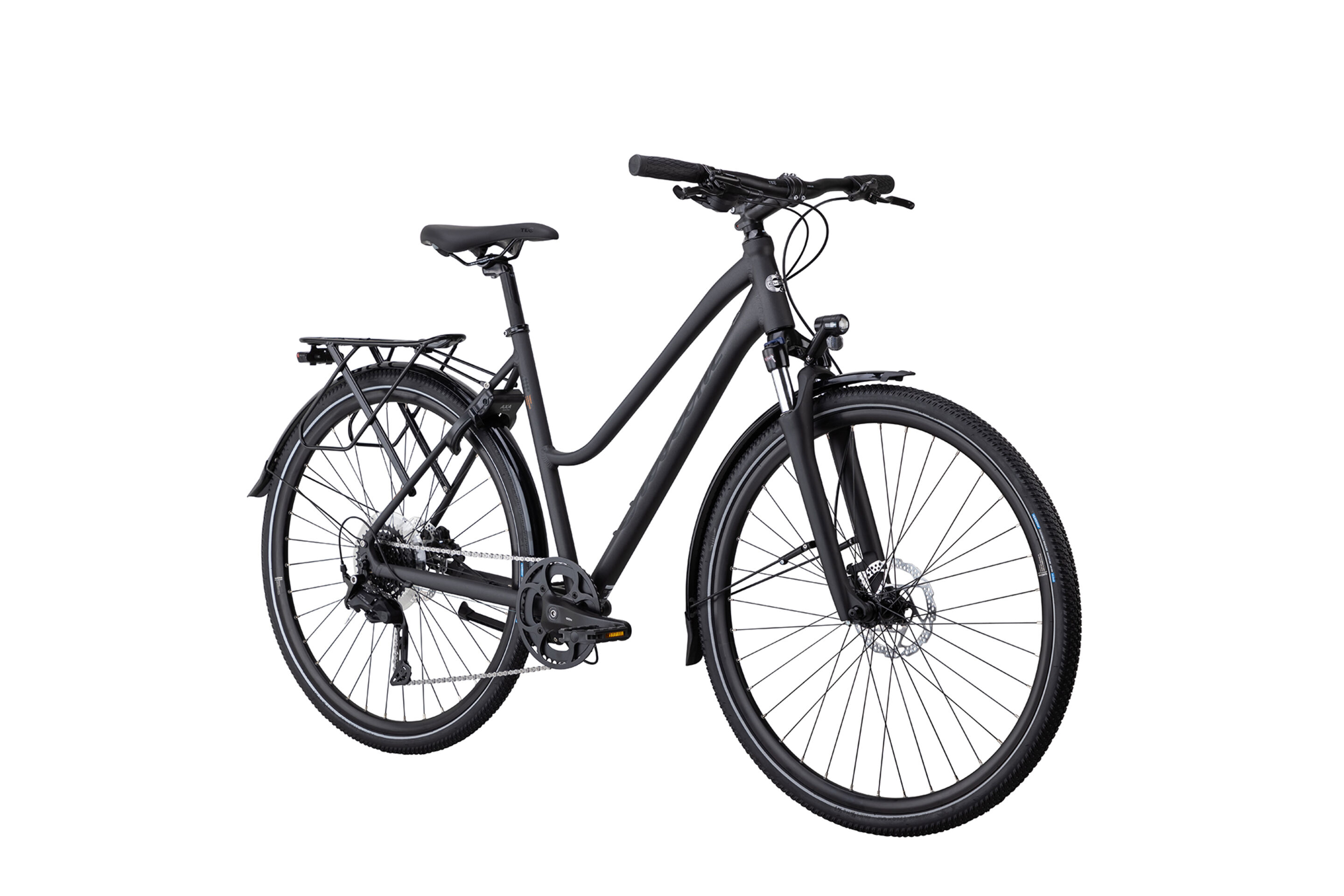Bromsar: Hydraulisk skivbroms fram och bak (Shimano®) · Hjul: Shimano/Spectra · Däck: Spectra Quantum Duramax Reflex, 60TPI, 40-622