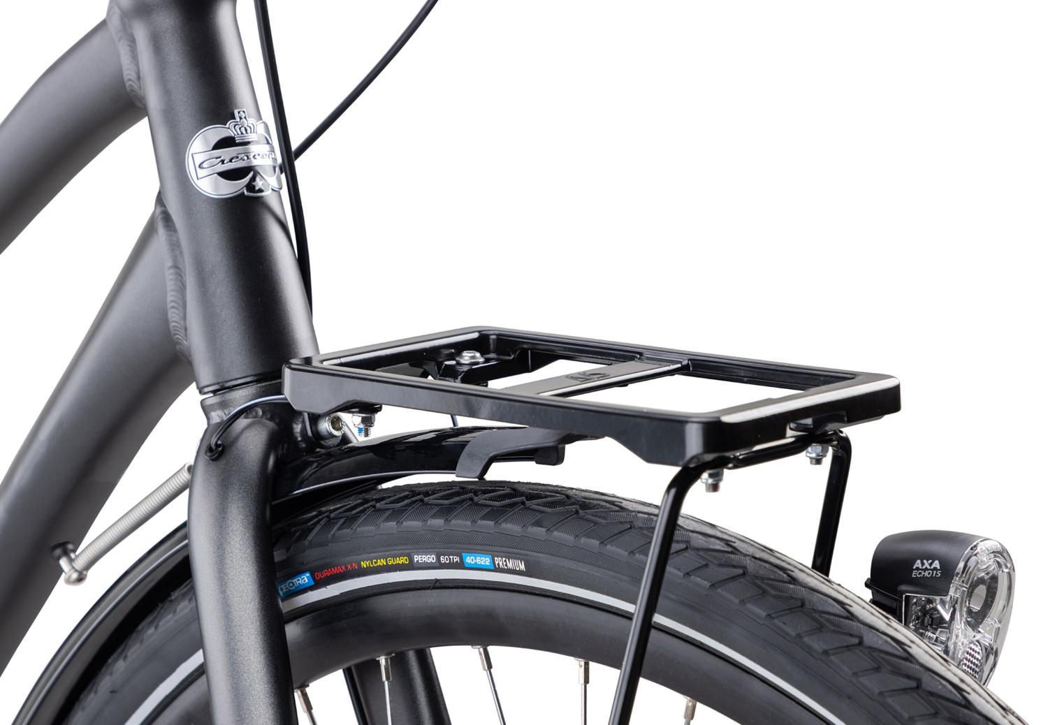 Dessutom har den en rejäl integrerad pakethållare baktill, med klicksystemet AVS som gör att du enkelt kan klicka fast väskor och korgar.
