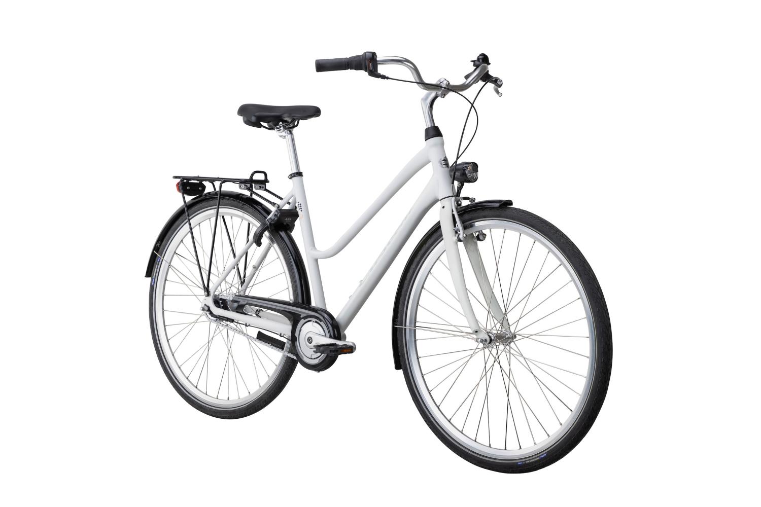 Med en rostfri, lätt och stark aluminiumram som har 7 växlar med integrerad kabeldragning kan du enkelt hitta rätt kraft i pedalerna för optimal fart. Den effektiva v-bromsen fram gör att du kan bromsa snabbt och säkert medan en klassisk fotbroms sköter bakbromsen. Skans levereras med en rejäl integrerad pakethållare med klicksystemet AVS så att väskor och korg enkelt kan tas av och på. En justerbar styrstam gör att du lätt kan anpassa din sittställning. Styret är lätt vinklat för bästa ergonomi och i ändarna sitter sköna handtag monterade. Om du vill ta dig fram snabbt och behagligt är detta cykeln för dig!