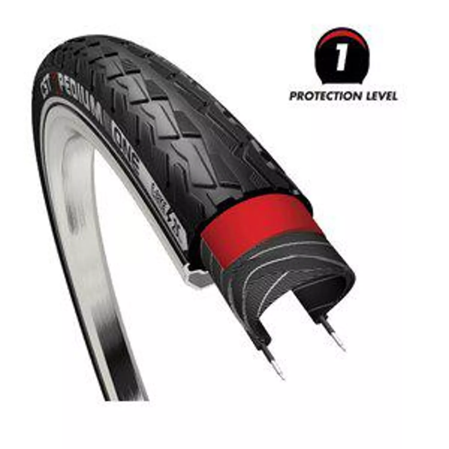 Däcket har ett allroundmönster som trivs lika bra i staden som på grusväg. Det har en stomme av en tät väv som skyddar mot punktering från kant till kant samt ett extra starkt lager under slitbanan som är motståndskraftigt mot stickor och skärsår. Med reflexsidan syns du bättre i mörkret.
