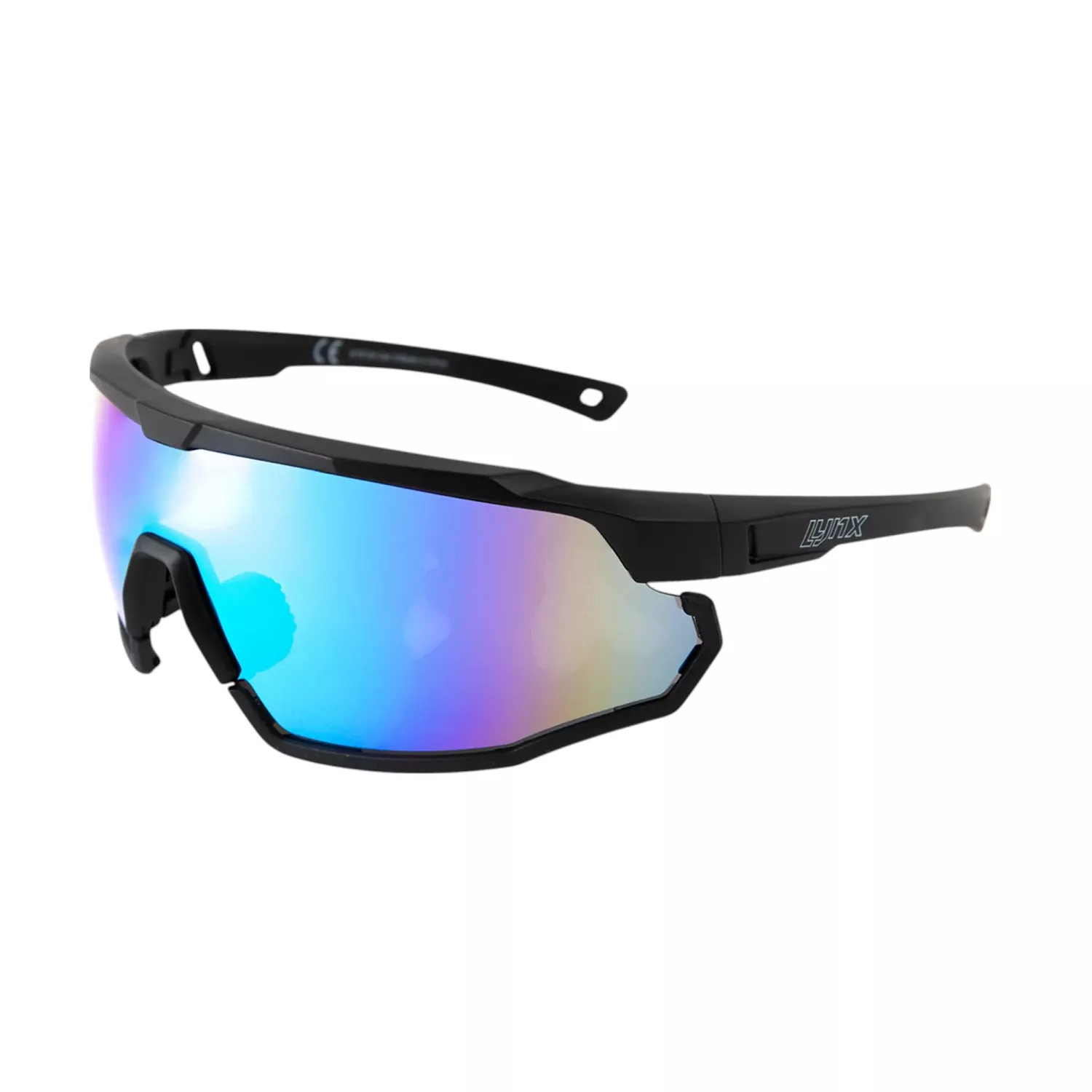 Dessa mattsvarta premium Lynx sportsolglasögon, kallade Galibier, levererar exceptionell prestanda på ljusa och soliga dagar med starkt solljus. Den mörkgrå/rökfärgade linsen med Sky Blue REVO-beläggning tillhör kategori 3 vad gäller ljusgenomsläpp (15%). Förutom god sikt erbjuder Galibier cykelglasögon 100% skydd mot UV-strålning och den imsäkra linsen immas inte igen. Det finns inget mer irriterande än glasögon som glider av näsan, vilket är anledningen till att nässtyckena är justerbara och tillverkade av gummi. Dessutom finns det halkfria ytor på insidan av skalmarna och glasögonen kan hållas extra på plats med hjälp av det elastiska bandet, som du enkelt klickar fast i änden av skalmarna. Om du inte gillar remsorna på undersidan av glasögonen kan de enkelt tas bort. Glasögonbågarna är tillverkade av TR90 termoplastmaterial, denna plast är mycket hållbar, flexibel och lätt.