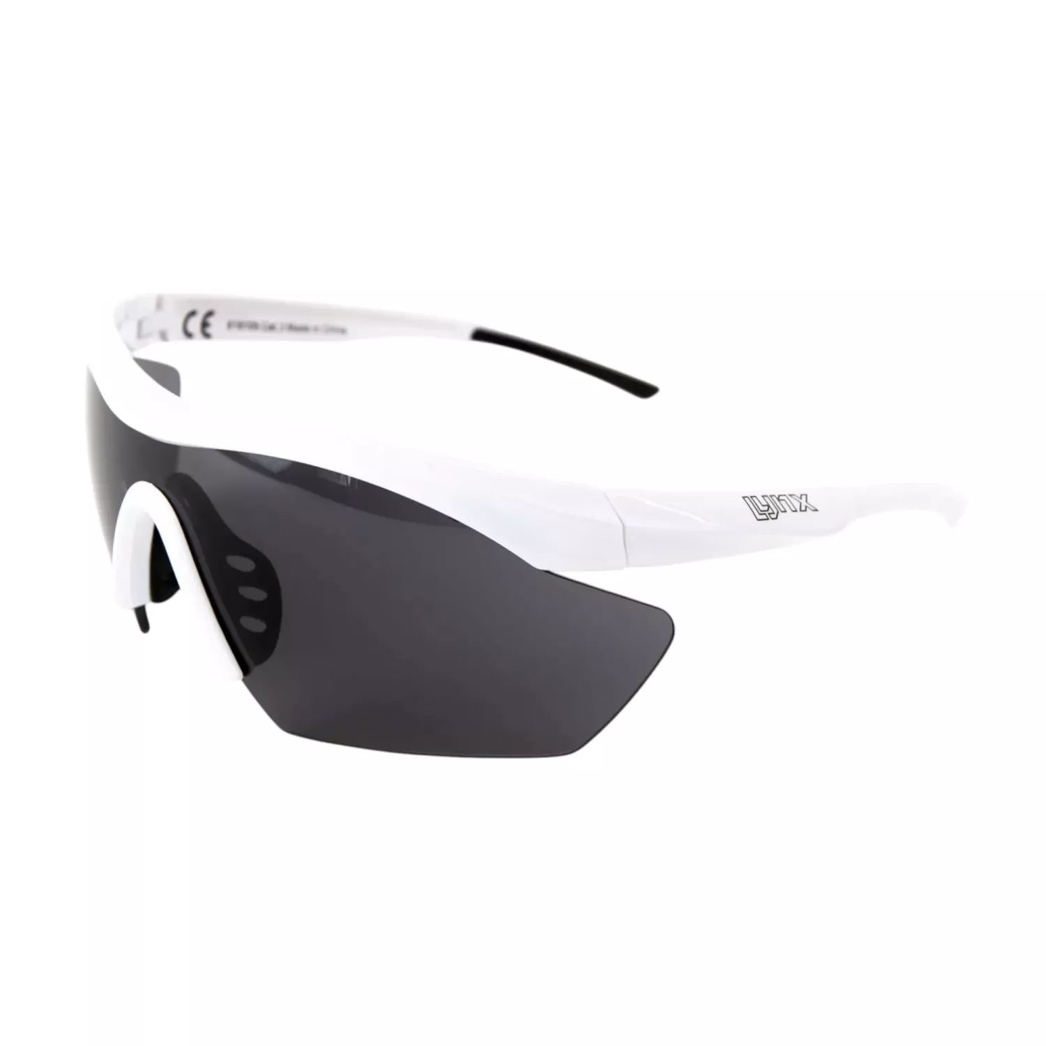 De vita Lynx Stelvio premium-sportsolglasögonen är perfekta för varje solig cykeltur. De mörkgrå (rökfärgade) standardlinserna ger ögonen 100 % skydd mot UV-strålning och är utrustade med imskydd så att de inte immar igen. Linserna tillhör kategori 3 vad gäller ljusgenomsläpp (9–18 %), vilket är perfekt för cykling på soliga sommardagar. Glasögonbågarna är tillverkade av TR90-termoplast, denna plast är mycket slitstark, flexibel och lätt. Den mjuka gumminästäcket formar sig enkelt efter näsan för maximal komfort och grepp. Halkfria ytor har applicerats på insidan av skalmarna för att säkerställa att glasögonen sitter perfekt på plats.