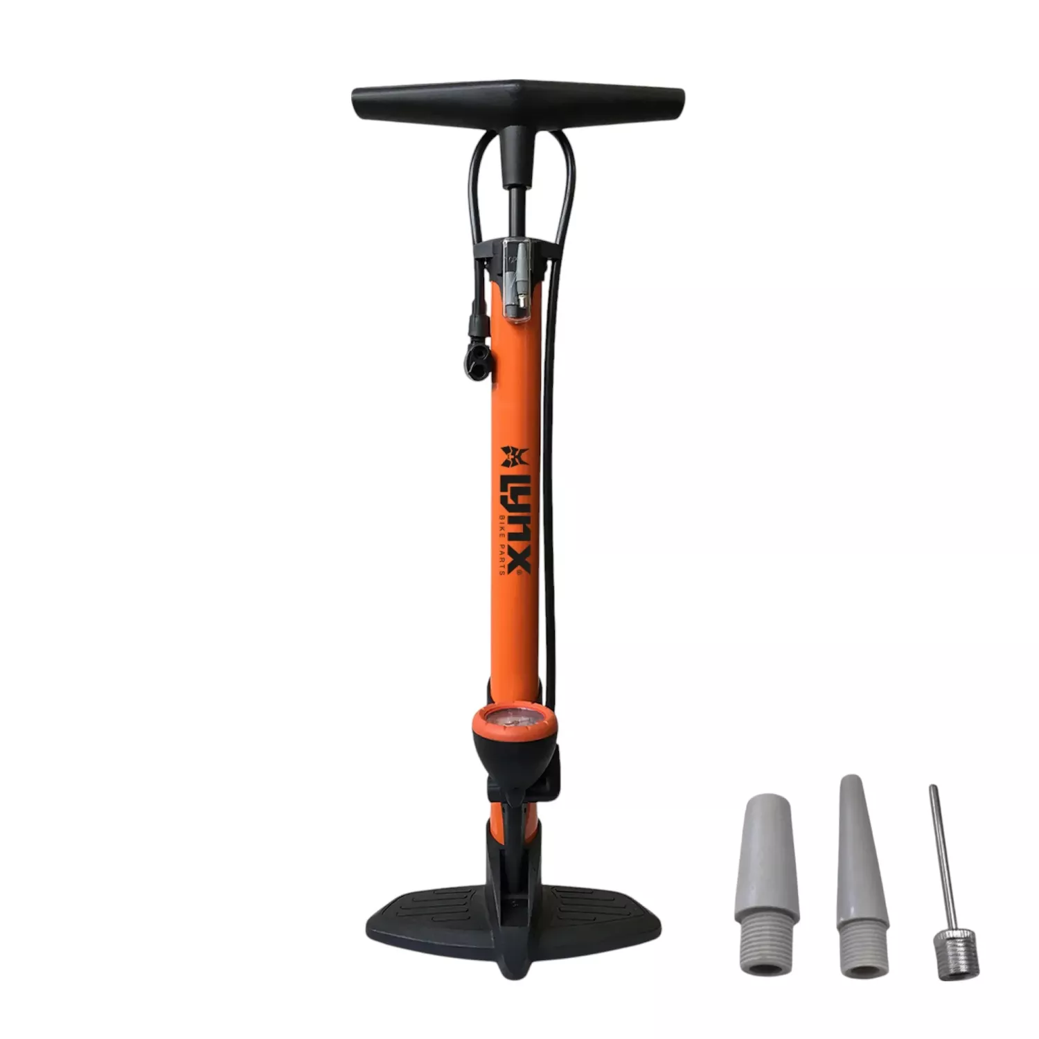 Den mest populära fotpumpen just nu. Lynx fotpump i stål med en noggrann tryckmätare. Utrustad med en universalpumpventil och extra ventiladaptrar. Perfekt för att pumpa upp cykeldäck, men kan även användas för bollar, luftmadrasser etc.