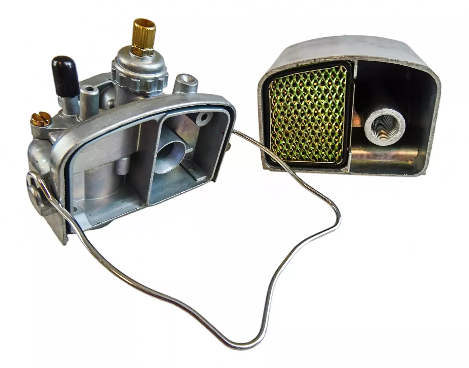 12 mm Bing SSB-förgasare (replika) anpassad för Sachs-motorer med runt insug och metalluftburk. Ett mycket bra alternativ vid renovering eller uppgradering från mindre förgasare, ger bättre gasrespons och jämn gång.
