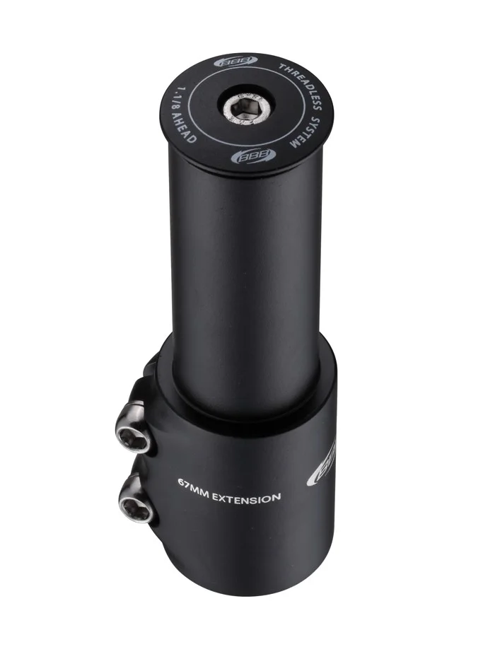 Förlängare för framgaffel som monteras på som en styrstam. Passar gafflar med rör som har ytterdiameter 1 1/8 28,6 mm. Förlänger 67 mm på höjden och den är tillverkad i aluminium 6061. Aheadcap medföljer.