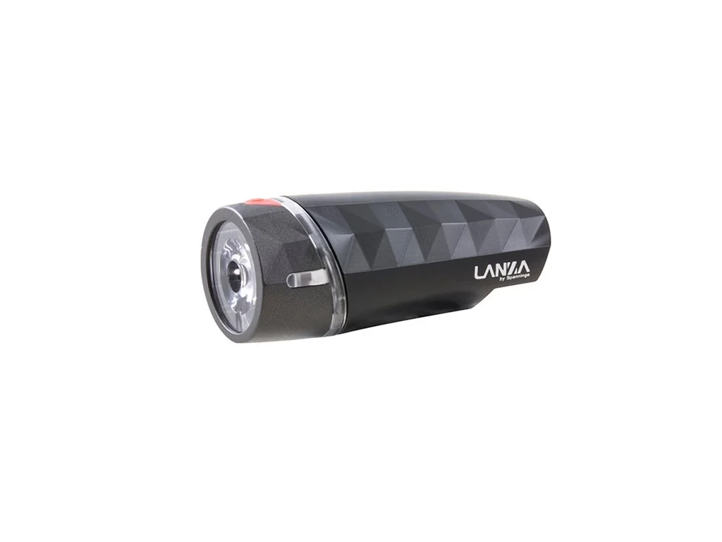 SPANNINGA LED-Framlampa Lanza BlackLevereras med batterier och fäste.