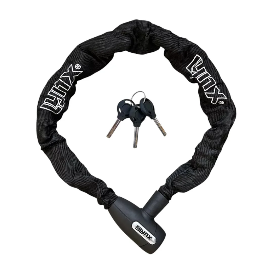Lynx Cityline XL kedjelås har en 95 cm lång högkvalitativ härdad stålkedja med 10 mm tjocka fyrkantslänkar.