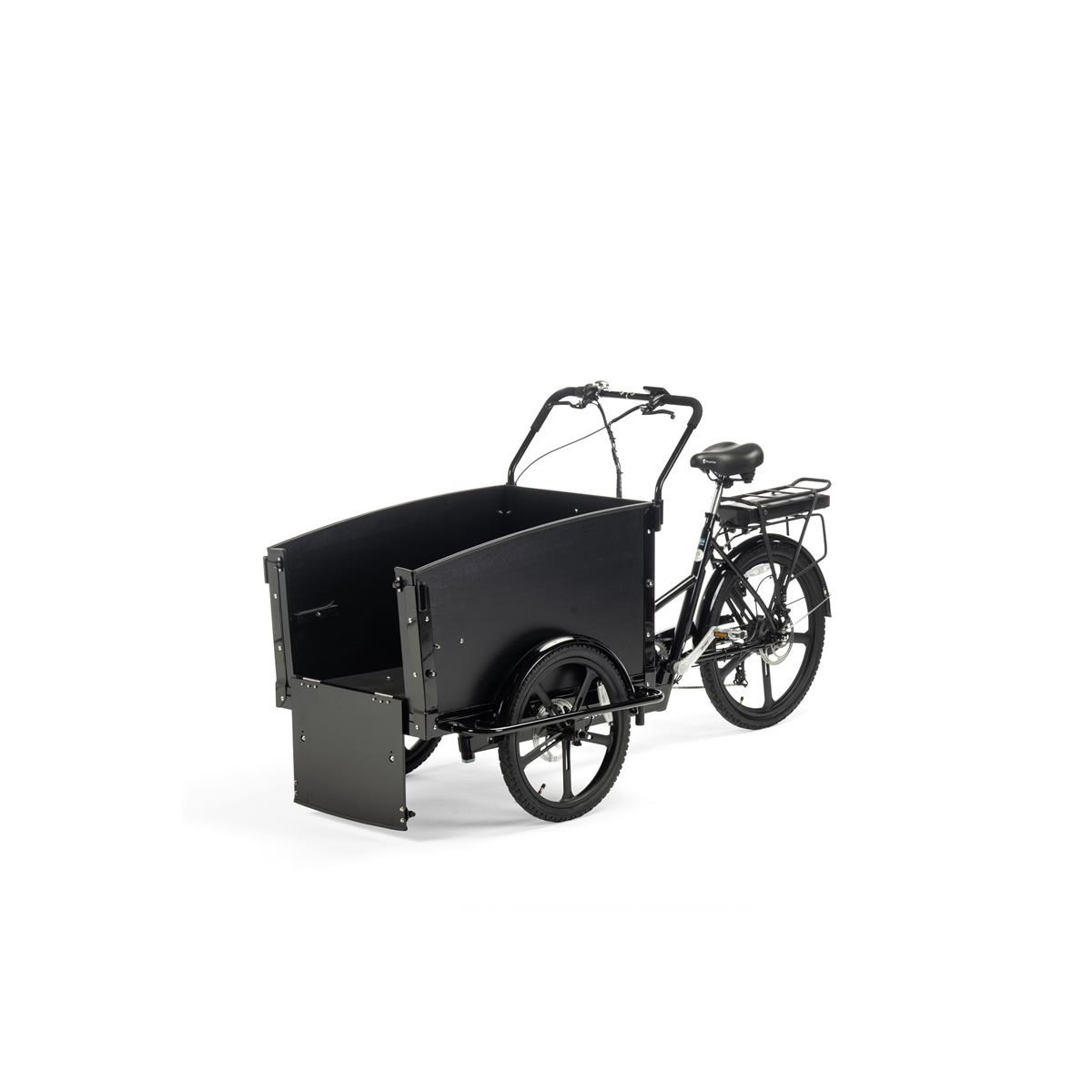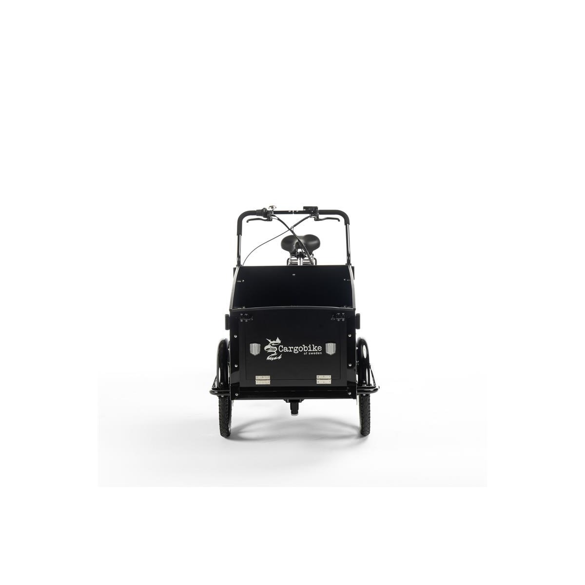 Den rymliga transportlådan är tillverkad i lackad marinplywood och har en halksäker botten för extra säkerhet. Den löstagbara bänken gör cykeln flexibel – använd den som sittplats för upp till två barn med bälten eller ta bort den helt för att skapa mer utrymme för hund, packning eller annan last.