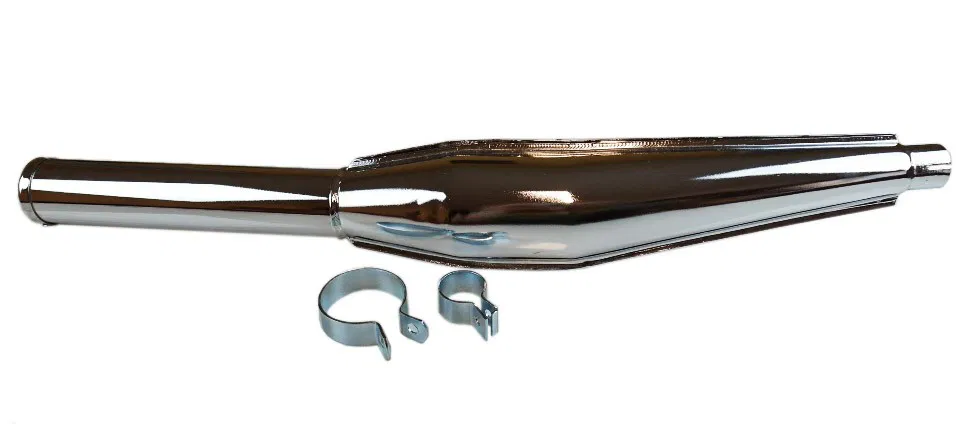 Ge din moped ett sportigare sound och bättre flöde med detta universella trimavgassystem i krom från Jamarcol.