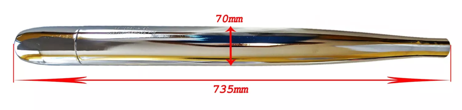 Kromad ljuddämpare från Jamarcol i klassisk 32 mm-dimension, speciellt anpassad för Crescent/Mcb (Sachs) Compact och liknande mopeder med Sachs-motorer.