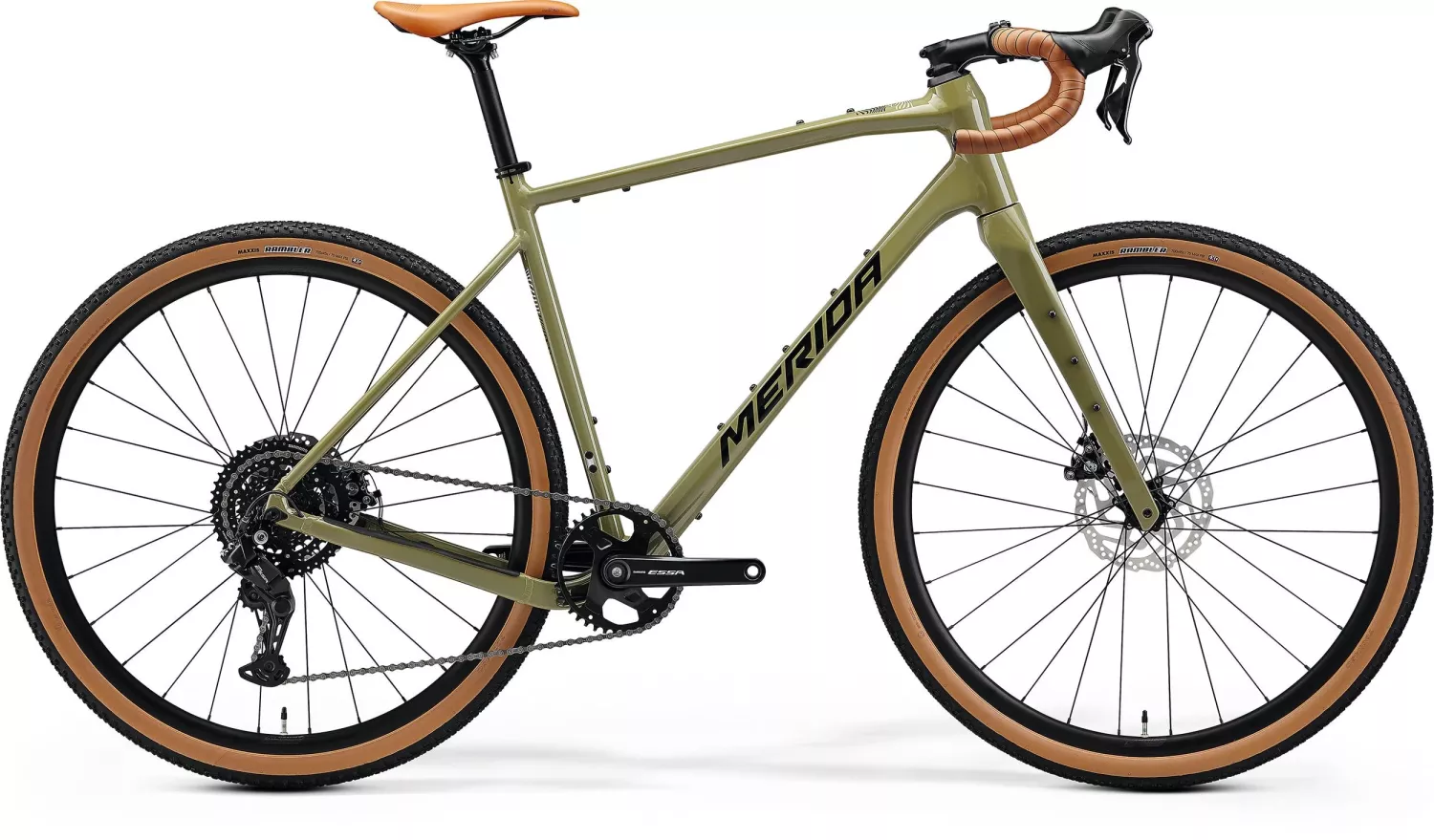 Prisbelönt aluminiumram med sänkt kedjestag och plats för 700x45 mm däck Flera fästpunkter för flaskhållare, väskor och stänkskärmar WIRE PORT intern kabeldragning för ett rent utseende och repfri montering av väskor Kolfibergaffel med fästpunkter för last och dragning för navgenerator Avslappnad styrvinkel och MTB-inspirerad geometri för stabilitet vid terrängkörning Shimano ESSA 1x8-växlad drivlina och MERIDA komponenter
