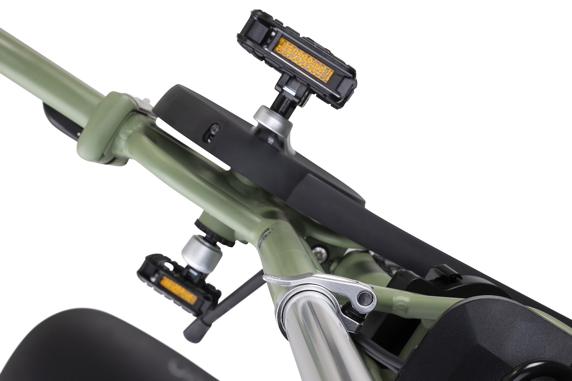dELbar är utrustad med pakethållare både fram och bak, båda med det smarta AVS-klicksystemet. Under färd klickar du enkelt på korgar och väskor, och när cykeln ska förvaras tar du loss dem lika smidigt. En kompakt cykel när den står still – en praktisk lastcykel när du är på rull.