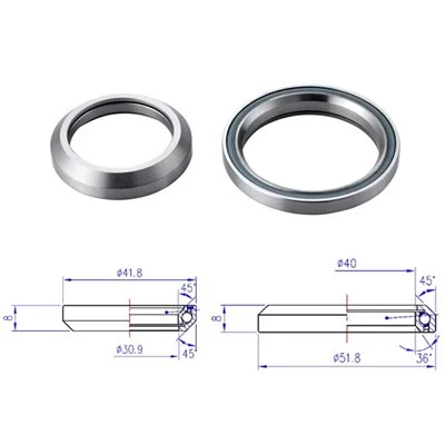 2 styck lager i pinpack för Taperade (1.1/8-1.5") integrerade styrlager. Bl.a. för styrlager: BHP-46 men även andra styrlager med samma storlek. Tätade lager i CrMo stål. Lagerdiameter: Övre 41.8mm 45ºx45º höjd.8mm , undre 51.8mm 36ºx45º höjd.8mm