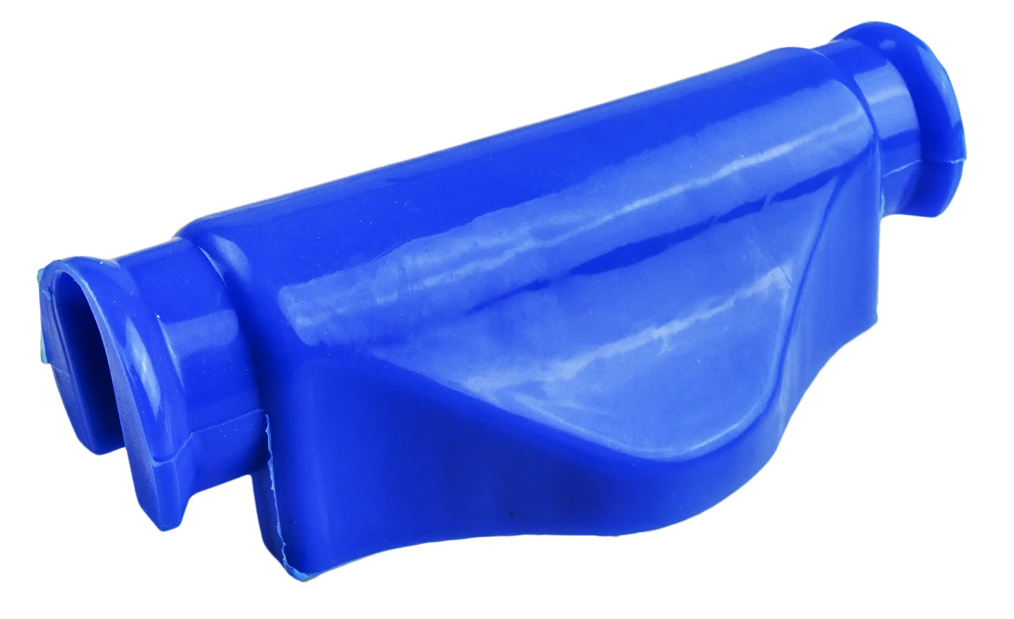 Blått styrskydd till Yamaha PW50 utan Yamaha-logotyp. Ett färgglatt tillbehör som ökar säkerheten och ger mopeden ett personligt utseende.